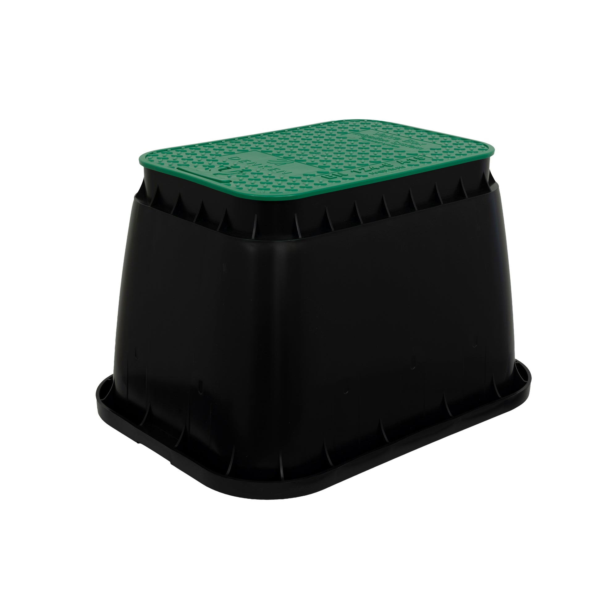 Boxă pentru electrovalve de dimensiuni medii, fabricată din plastic 100% reciclat, cu un design robust, rezistent la vandalism.